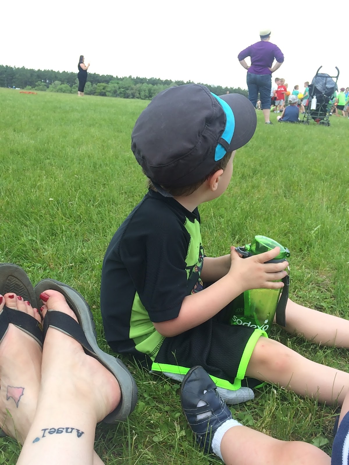 I love that Ansel just wants to be a part of the boys. He sat on the bleachers and ate his PB &J and drank a juice box just like the older two. So cute!